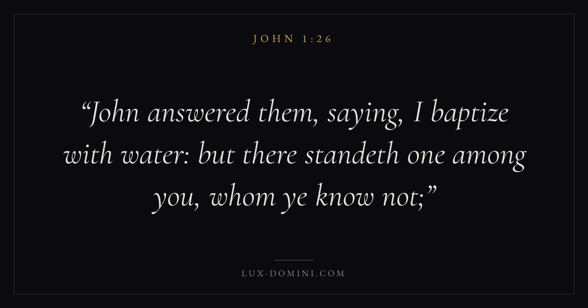 John answered them, saying, I baptize with water: but there standeth one among you, whom ye know not;