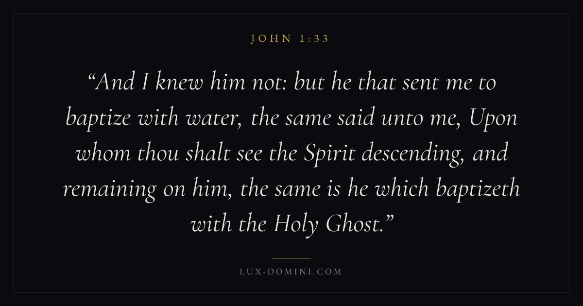 And I knew him not: but he that sent me to baptize with water, the same said unto me, Upon whom thou shalt see the Spirit descending, and remaining on him, the same is he which baptizeth with the Holy Ghost.