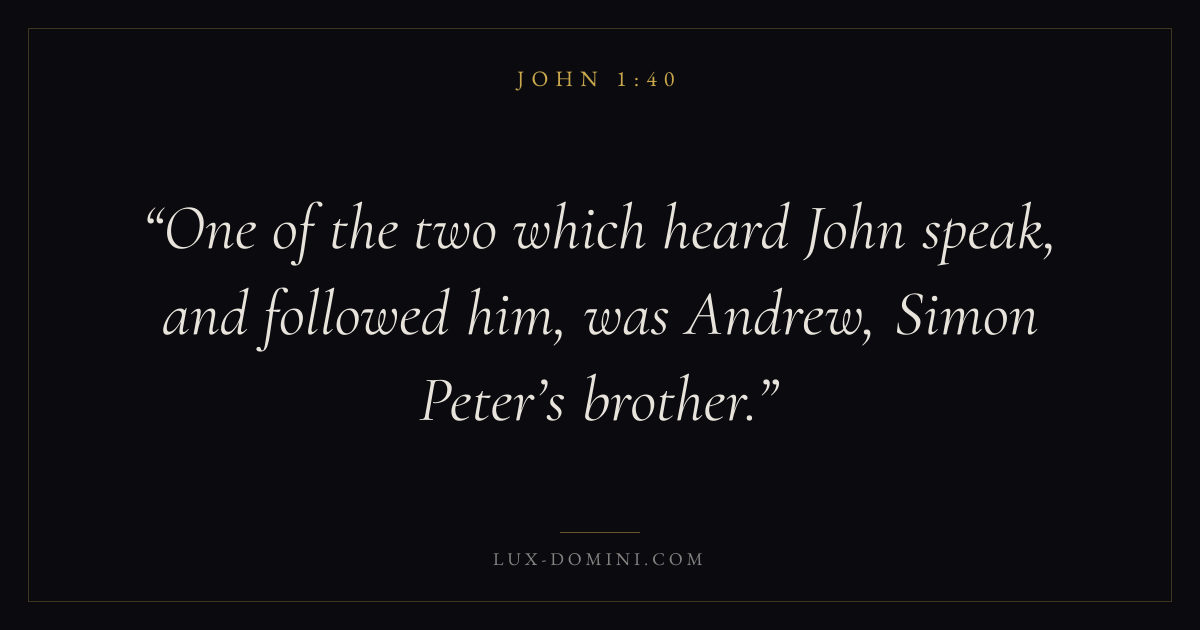 One of the two which heard John speak, and followed him, was Andrew, Simon Peter’s brother.