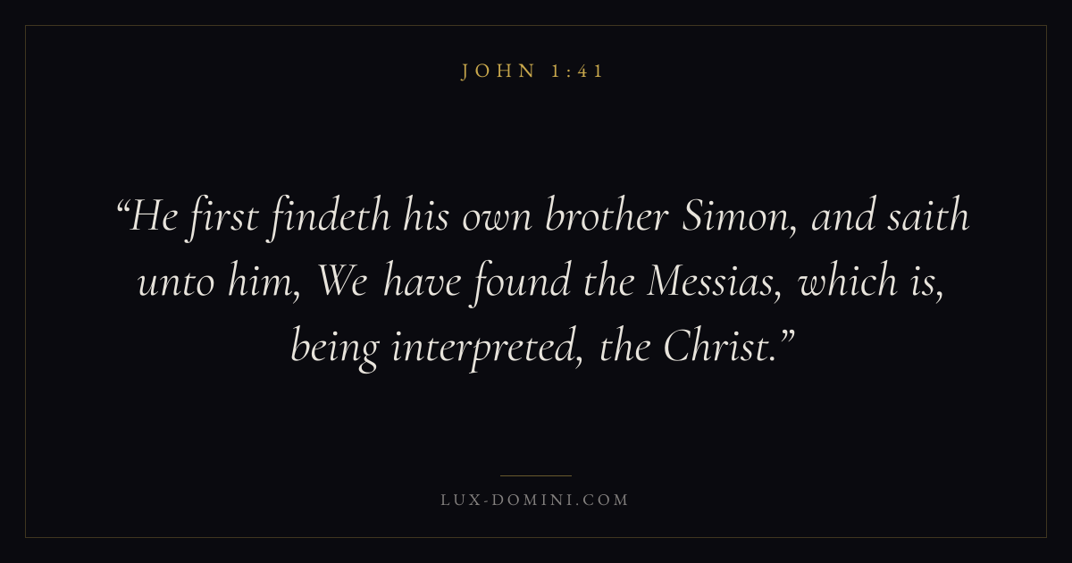 He first findeth his own brother Simon, and saith unto him, We have found the Messias, which is, being interpreted, the Christ.