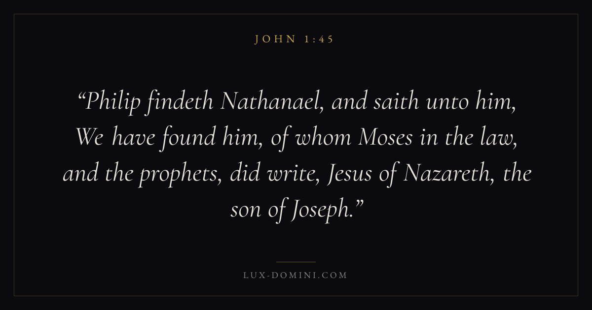 Philip findeth Nathanael, and saith unto him, We have found him, of whom Moses in the law, and the prophets, did write, Jesus of Nazareth, the son of Joseph.