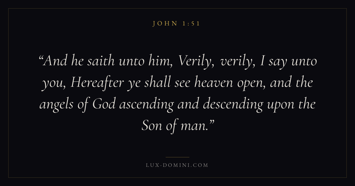And he saith unto him, Verily, verily, I say unto you, Hereafter ye shall see heaven open, and the angels of God ascending and descending upon the Son of man.