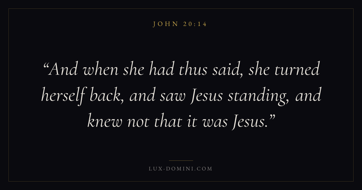 And when she had thus said, she turned herself back, and saw Jesus standing, and knew not that it was Jesus.