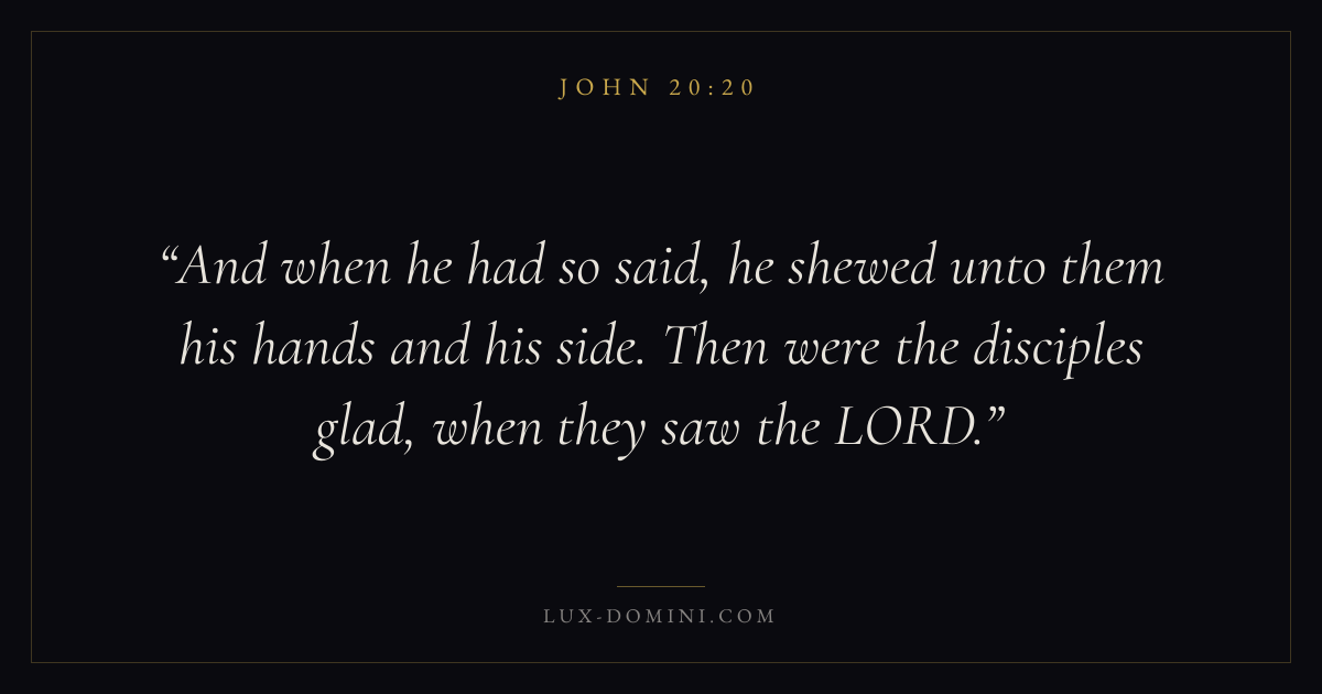 And when he had so said, he shewed unto them his hands and his side. Then were the disciples glad, when they saw the LORD.