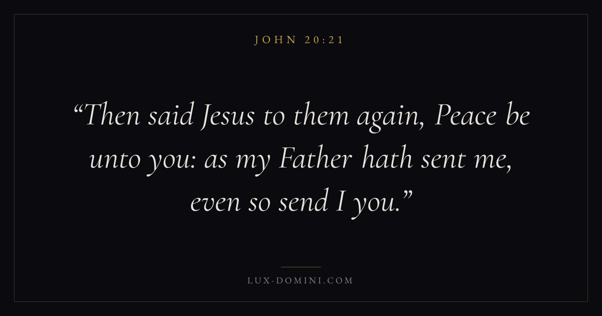 Then said Jesus to them again, Peace be unto you: as my Father hath sent me, even so send I you.