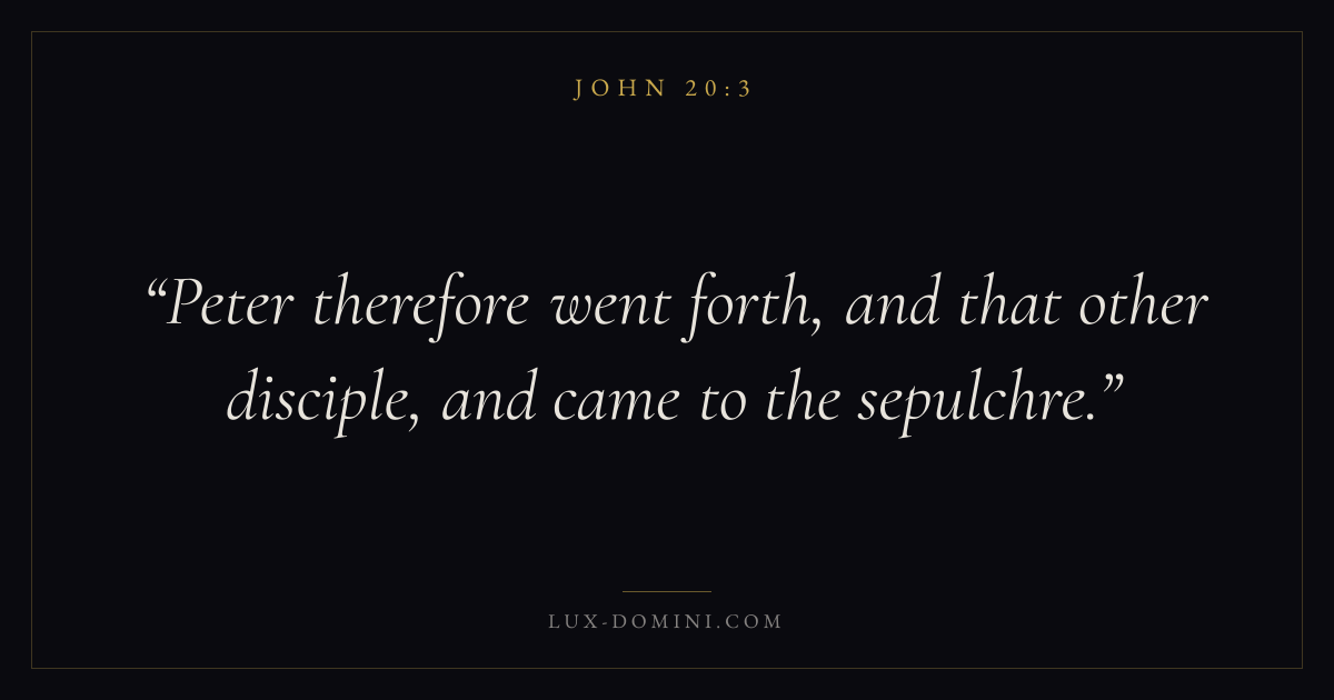 Peter therefore went forth, and that other disciple, and came to the sepulchre.