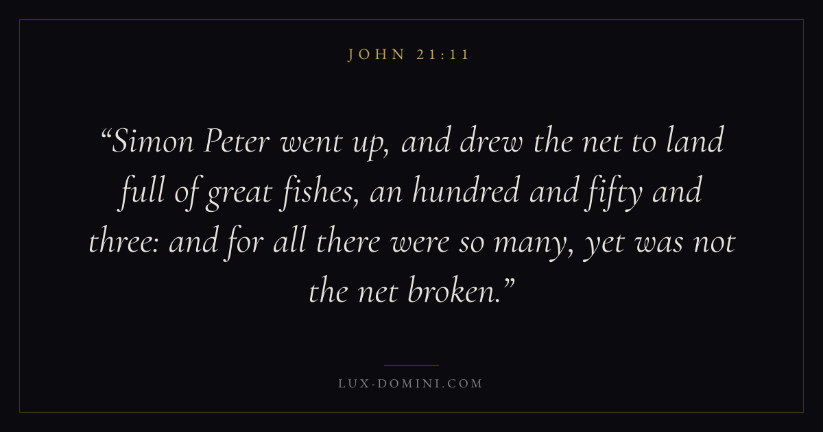 Simon Peter went up, and drew the net to land full of great fishes, an hundred and fifty and three: and for all there were so many, yet was not the net broken.