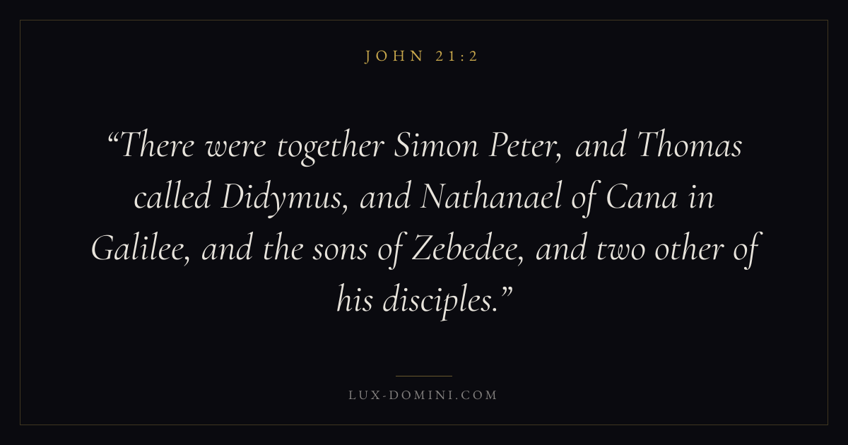 There were together Simon Peter, and Thomas called Didymus, and Nathanael of Cana in Galilee, and the sons of Zebedee, and two other of his disciples.
