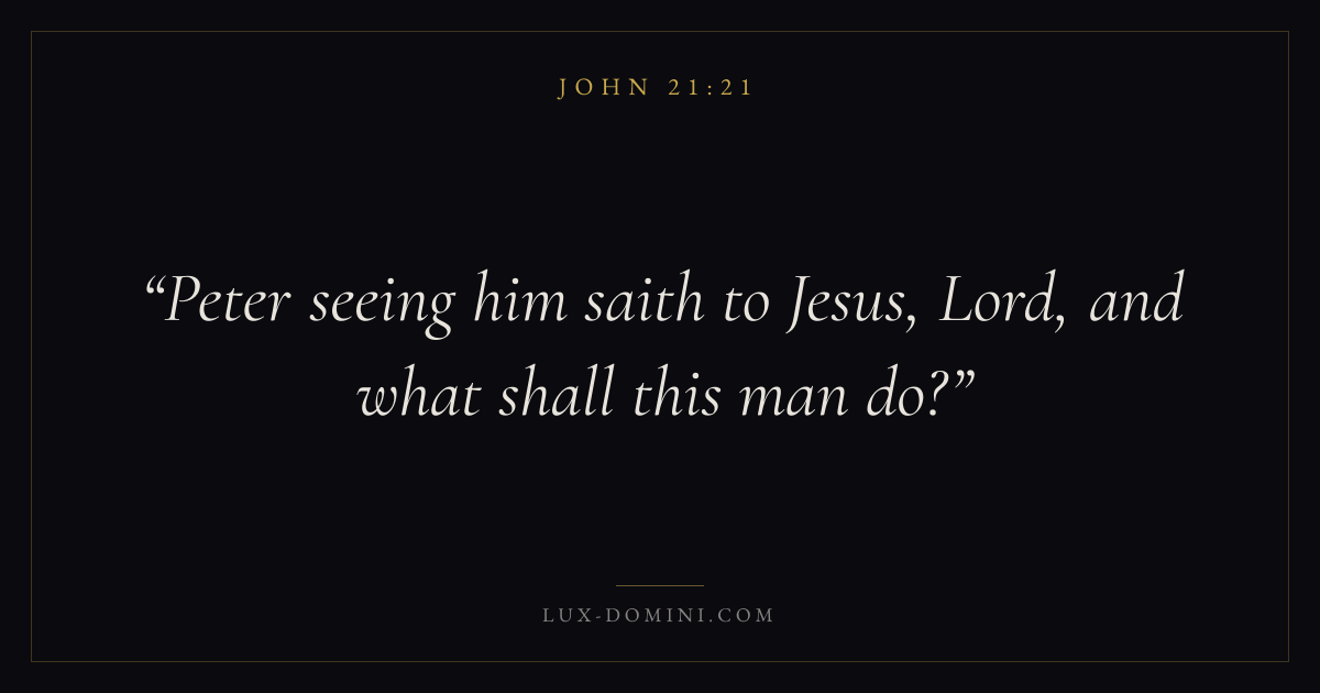 Peter seeing him saith to Jesus, Lord, and what shall this man do?
