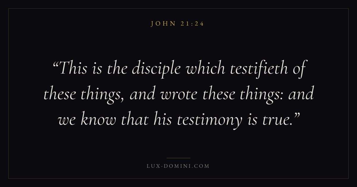 This is the disciple which testifieth of these things, and wrote these things: and we know that his testimony is true.