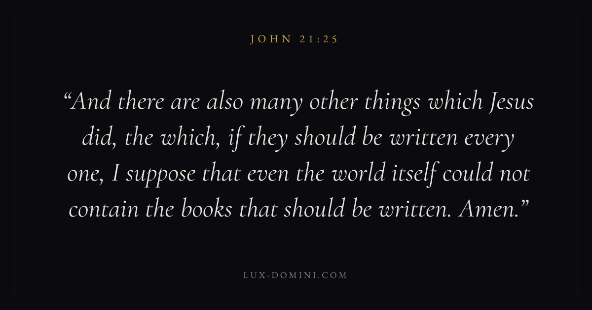 And there are also many other things which Jesus did, the which, if they should be written every one, I suppose that even the world itself could not contain the books that should be written. Amen.