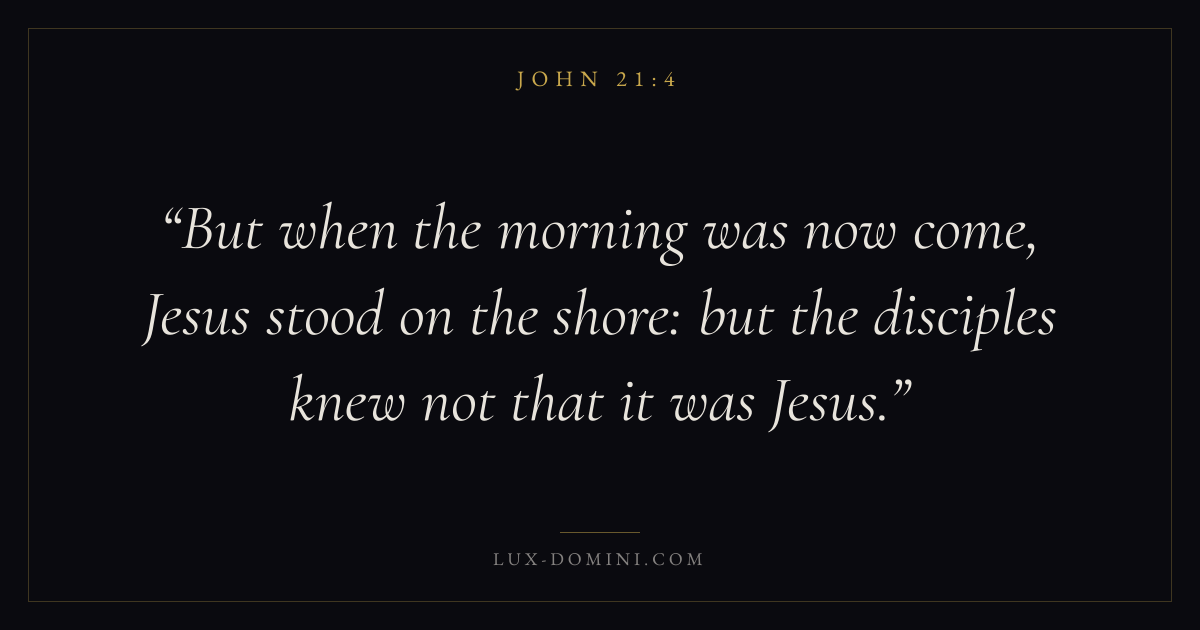 But when the morning was now come, Jesus stood on the shore: but the disciples knew not that it was Jesus.