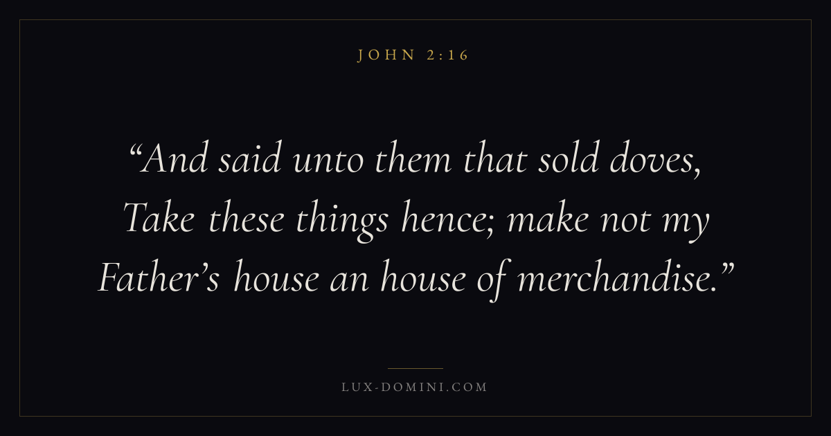 And said unto them that sold doves, Take these things hence; make not my Father’s house an house of merchandise.