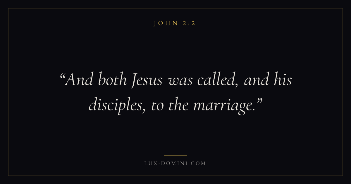 Books / John / Chapter 2 / Verse 2 ← John 2:1 John 2:2 John 2:3 → And both Jesus was called, and his disciples, to the marriage. Download verse card Share on Twitter Share on Facebook Pin it ✦ Key themes LoveFaithPrayerTruthIncarnation Read with John 2:1John 2:3John 3:161 Corinthians 13:4 Related topics Bible verses about loveBible verses about faithBible verses about prayerBible verses about truth ✦ John Chapter 2 verses V. 1 V. 2 V. 3 V. 4 V. 5 V. 6 V. 7 V. 8 V. 9 V. 10 V. 11 V. 12 V. 13 V. 14 V. 15 V. 16 V. 17 V. 18 V. 19 V. 20 V. 21 V. 22 V. 23 V. 24 V. 25