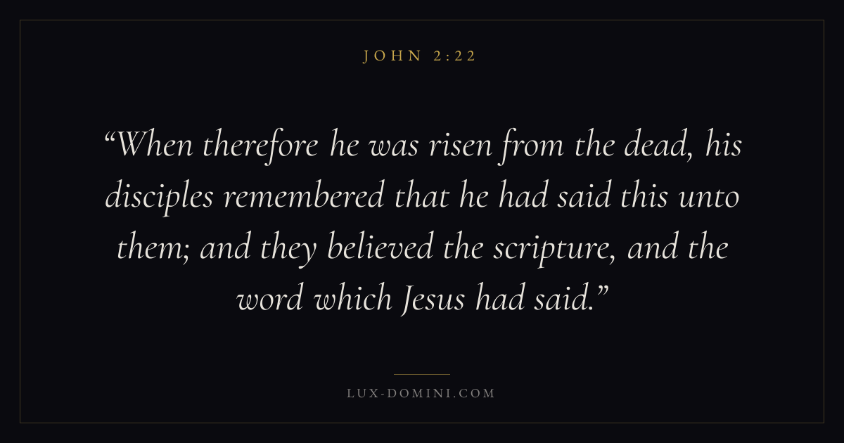 When therefore he was risen from the dead, his disciples remembered that he had said this unto them; and they believed the scripture, and the word which Jesus had said.