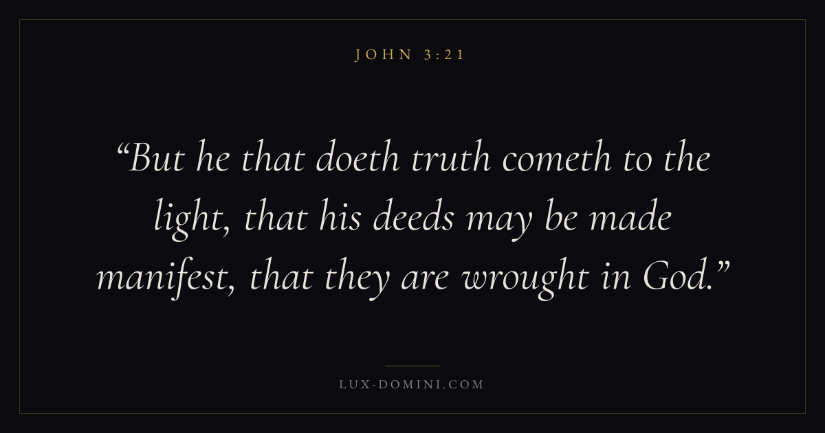But he that doeth truth cometh to the light, that his deeds may be made manifest, that they are wrought in God.