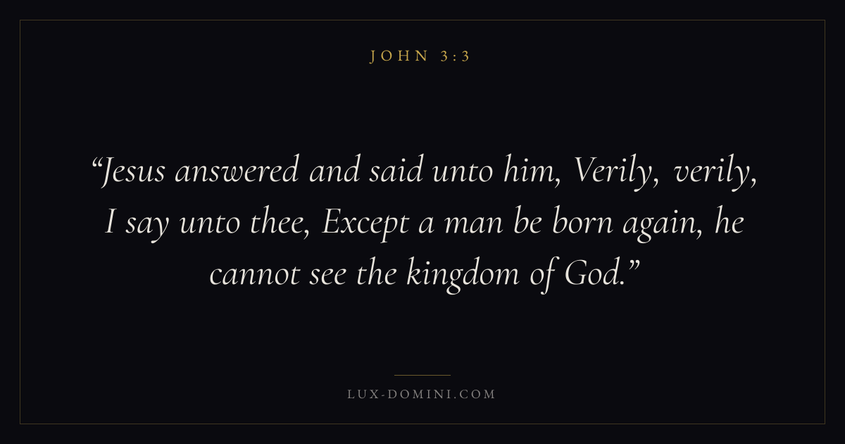 Jesus answered and said unto him, Verily, verily, I say unto thee, Except a man be born again, he cannot see the kingdom of God.
