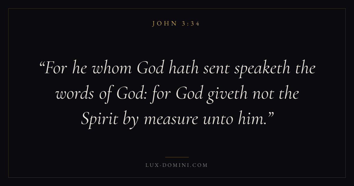 For he whom God hath sent speaketh the words of God: for God giveth not the Spirit by measure unto him.