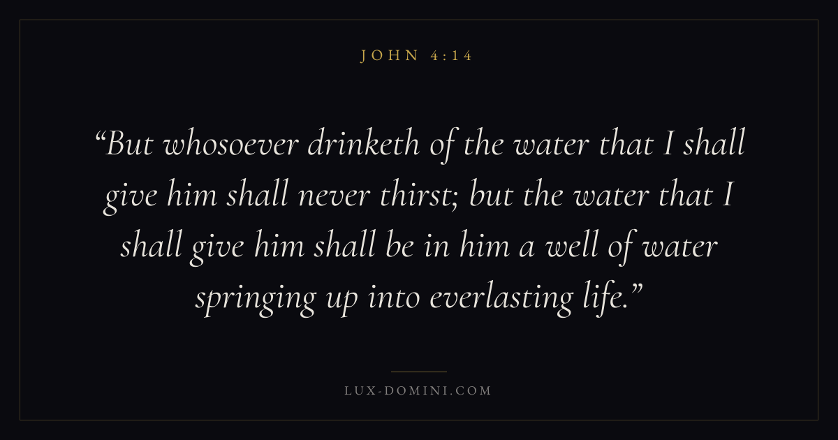 But whosoever drinketh of the water that I shall give him shall never thirst; but the water that I shall give him shall be in him a well of water springing up into everlasting life.