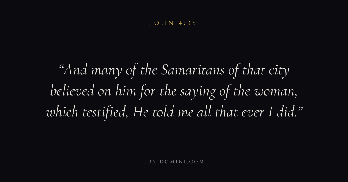 And many of the Samaritans of that city believed on him for the saying of the woman, which testified, He told me all that ever I did.