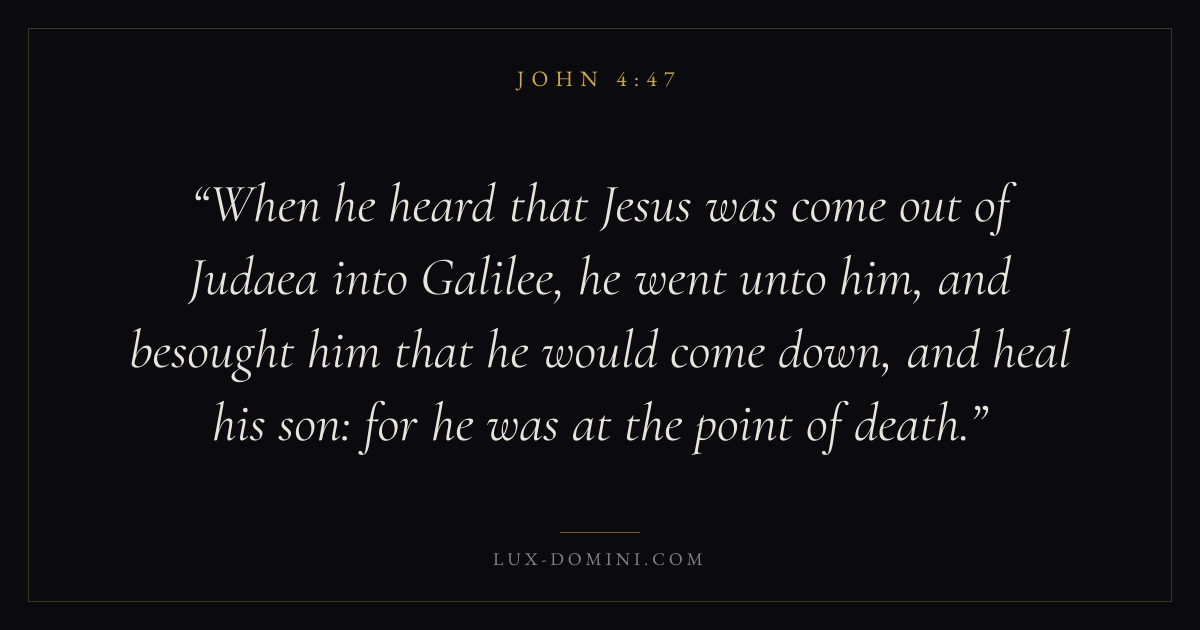 When he heard that Jesus was come out of Judaea into Galilee, he went unto him, and besought him that he would come down, and heal his son: for he was at the point of death.
