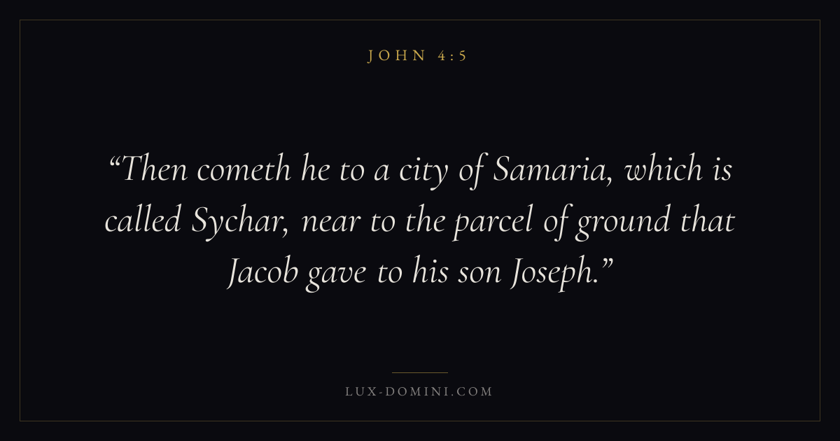 Then cometh he to a city of Samaria, which is called Sychar, near to the parcel of ground that Jacob gave to his son Joseph.