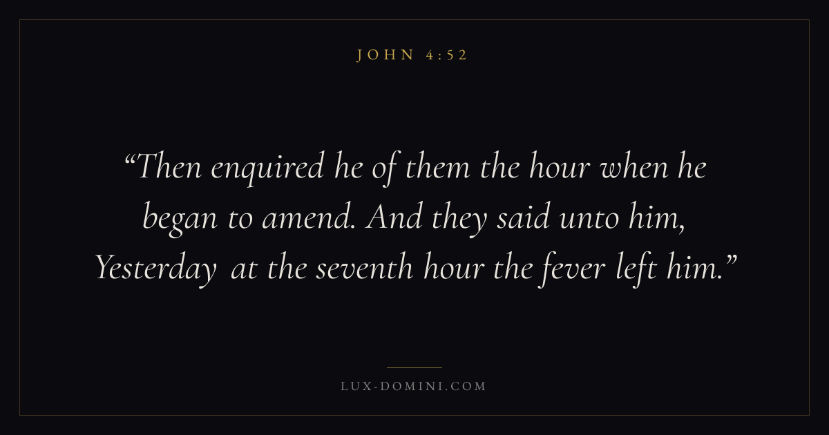 Then enquired he of them the hour when he began to amend. And they said unto him, Yesterday at the seventh hour the fever left him.
