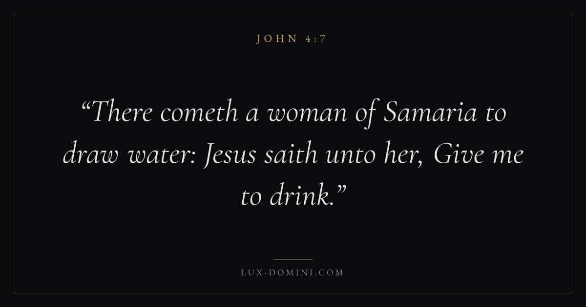 There cometh a woman of Samaria to draw water: Jesus saith unto her, Give me to drink.