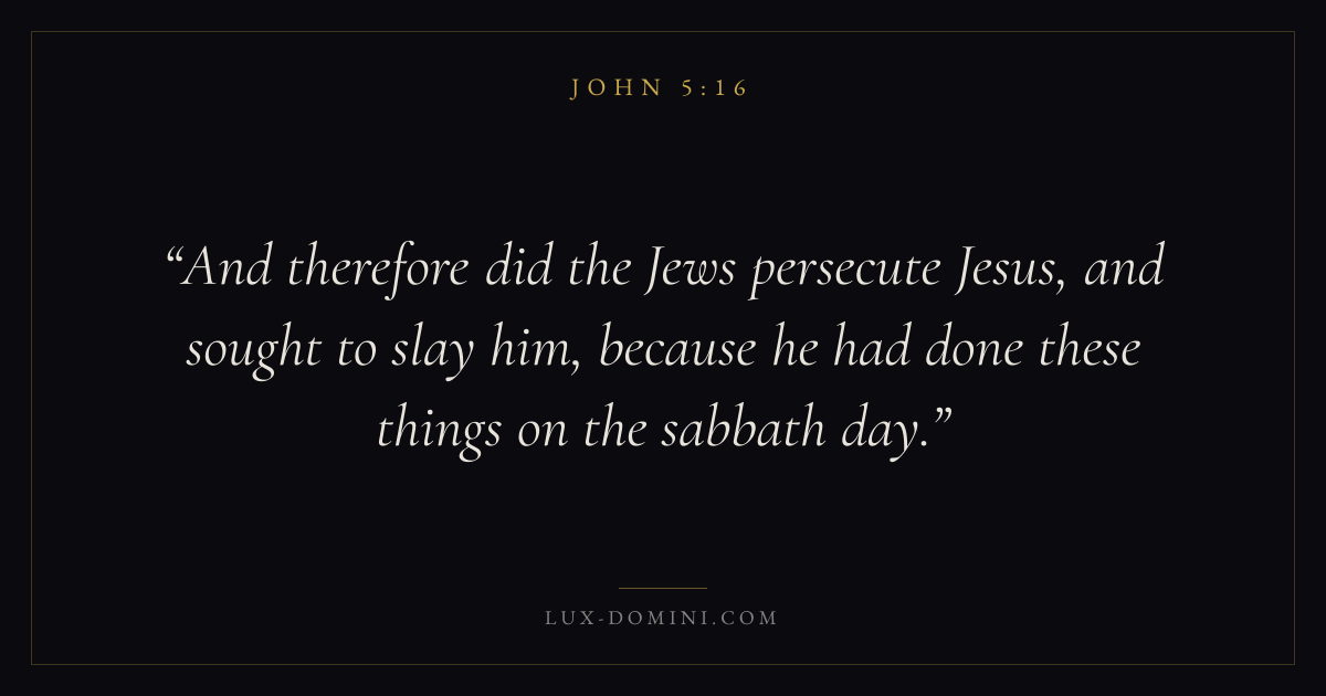 And therefore did the Jews persecute Jesus, and sought to slay him, because he had done these things on the sabbath day.