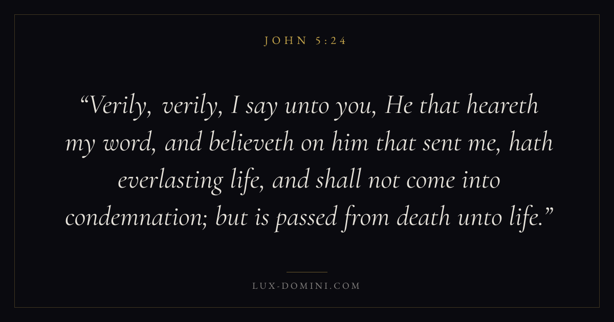 Verily, verily, I say unto you, He that heareth my word, and believeth on him that sent me, hath everlasting life, and shall not come into condemnation; but is passed from death unto life.