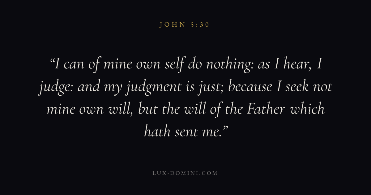 I can of mine own self do nothing: as I hear, I judge: and my judgment is just; because I seek not mine own will, but the will of the Father which hath sent me.