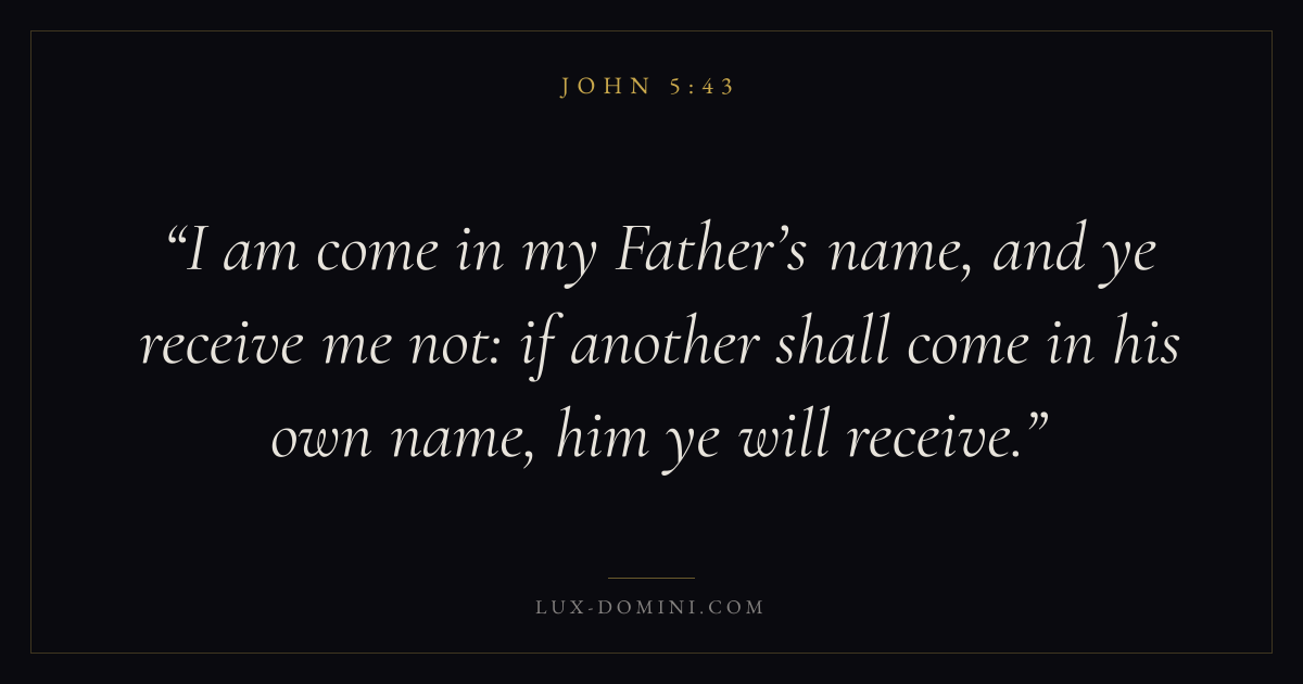 I am come in my Father’s name, and ye receive me not: if another shall come in his own name, him ye will receive.