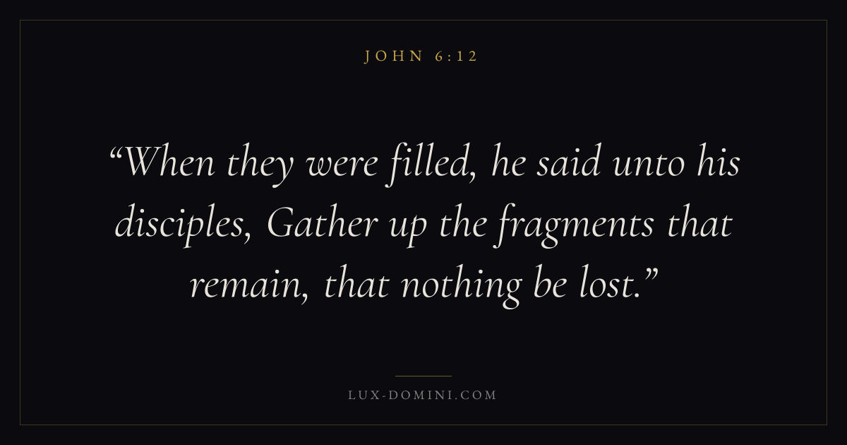 When they were filled, he said unto his disciples, Gather up the fragments that remain, that nothing be lost.