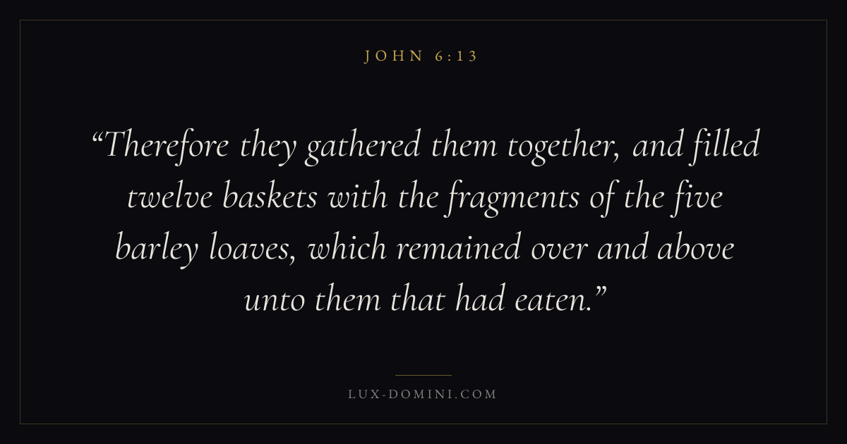 Therefore they gathered them together, and filled twelve baskets with the fragments of the five barley loaves, which remained over and above unto them that had eaten.