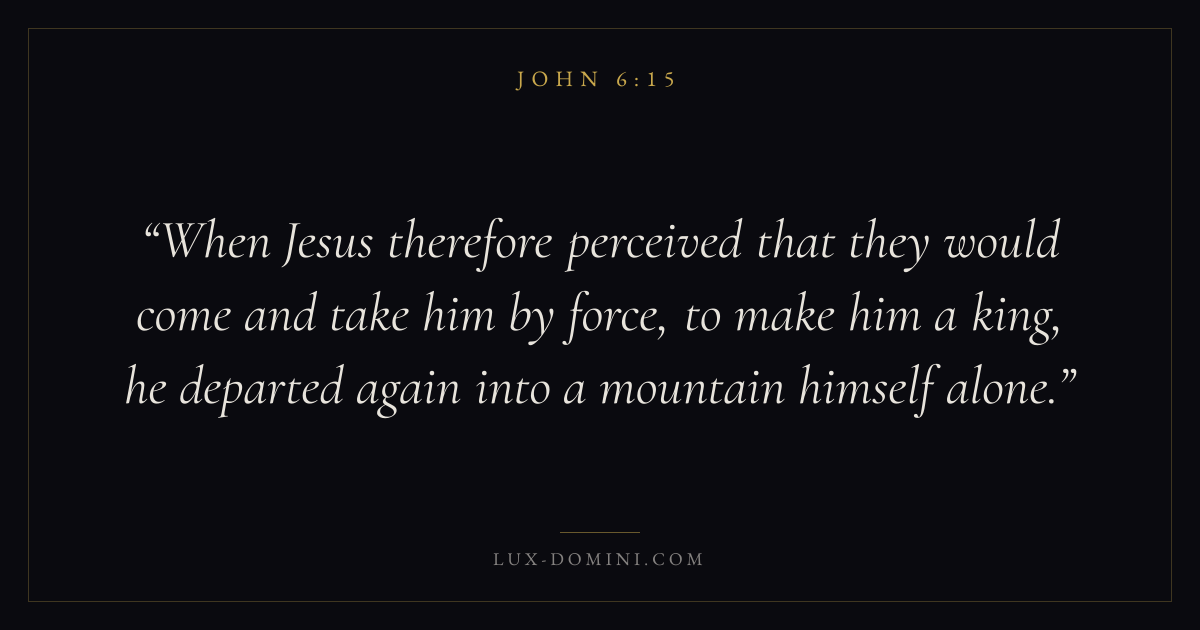When Jesus therefore perceived that they would come and take him by force, to make him a king, he departed again into a mountain himself alone.