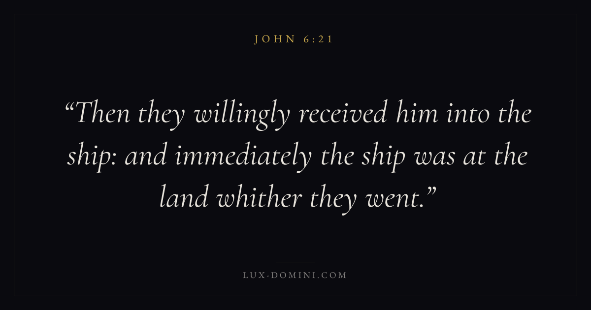 Then they willingly received him into the ship: and immediately the ship was at the land whither they went.