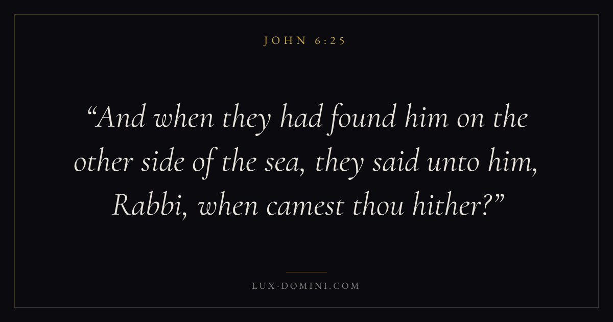 And when they had found him on the other side of the sea, they said unto him, Rabbi, when camest thou hither?