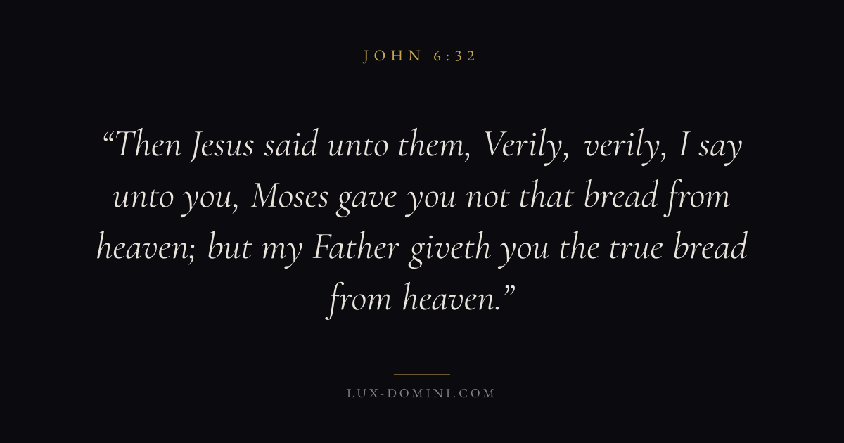 Then Jesus said unto them, Verily, verily, I say unto you, Moses gave you not that bread from heaven; but my Father giveth you the true bread from heaven.