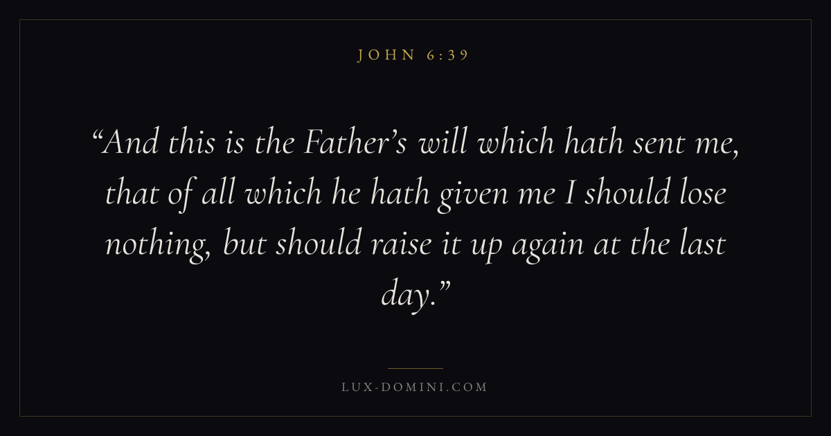 And this is the Father’s will which hath sent me, that of all which he hath given me I should lose nothing, but should raise it up again at the last day.