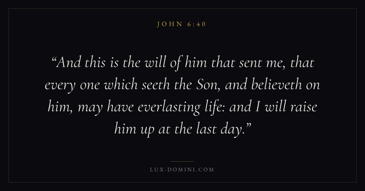 And this is the will of him that sent me, that every one which seeth the Son, and believeth on him, may have everlasting life: and I will raise him up at the last day.