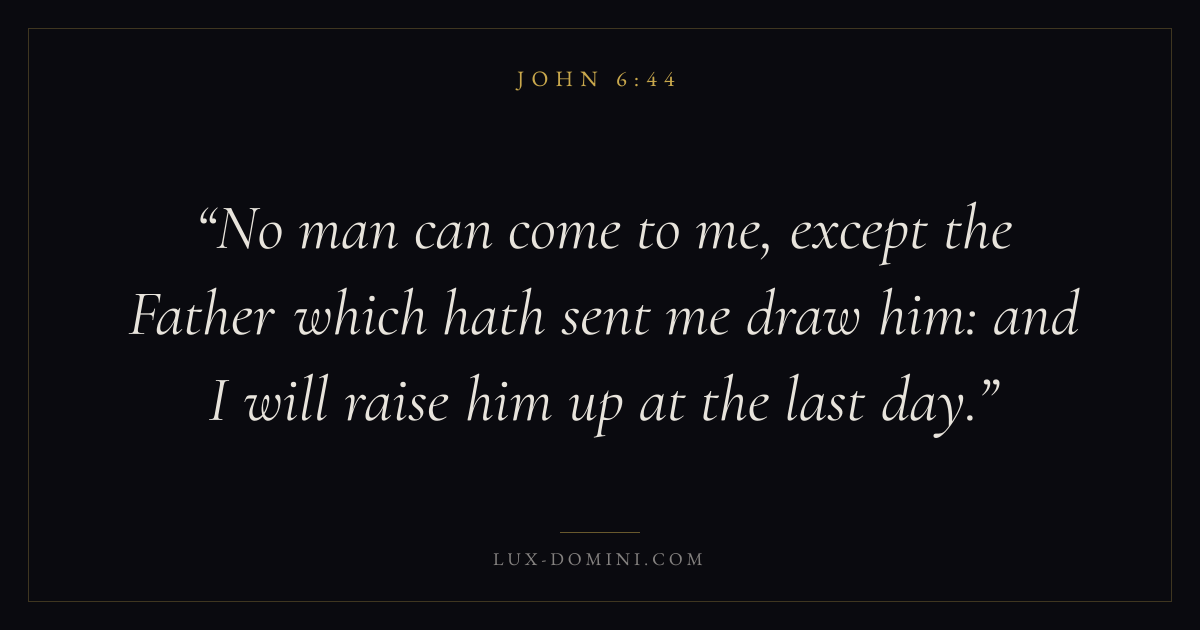 No man can come to me, except the Father which hath sent me draw him: and I will raise him up at the last day.