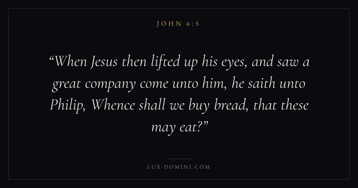 When Jesus then lifted up his eyes, and saw a great company come unto him, he saith unto Philip, Whence shall we buy bread, that these may eat?