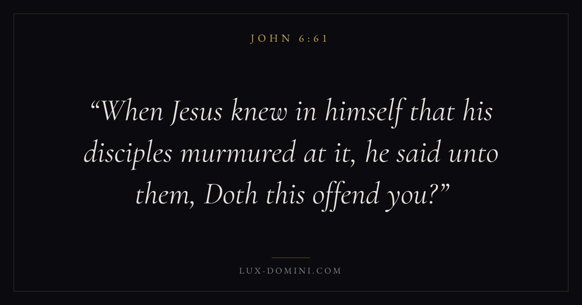 When Jesus knew in himself that his disciples murmured at it, he said unto them, Doth this offend you?