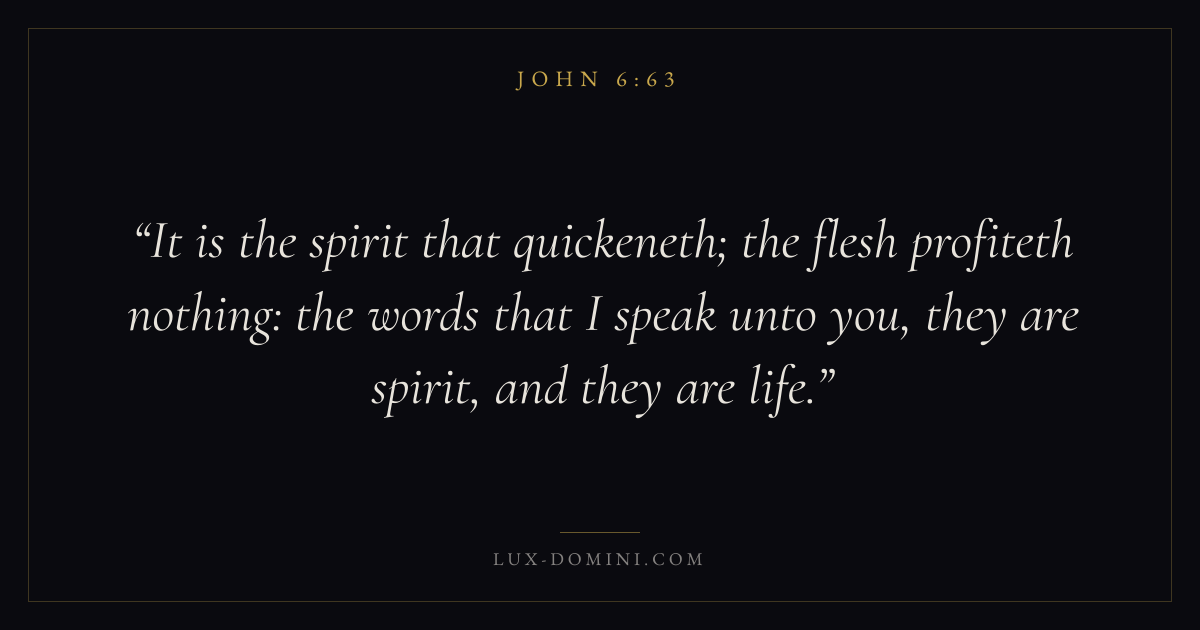 It is the spirit that quickeneth; the flesh profiteth nothing: the words that I speak unto you, they are spirit, and they are life.