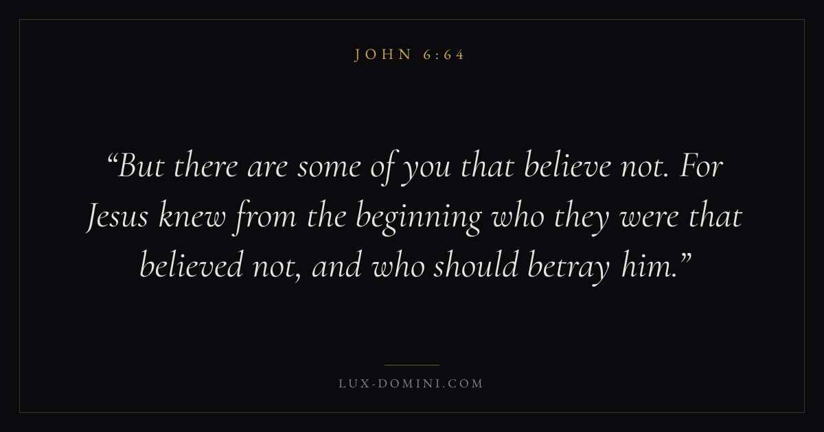 But there are some of you that believe not. For Jesus knew from the beginning who they were that believed not, and who should betray him.