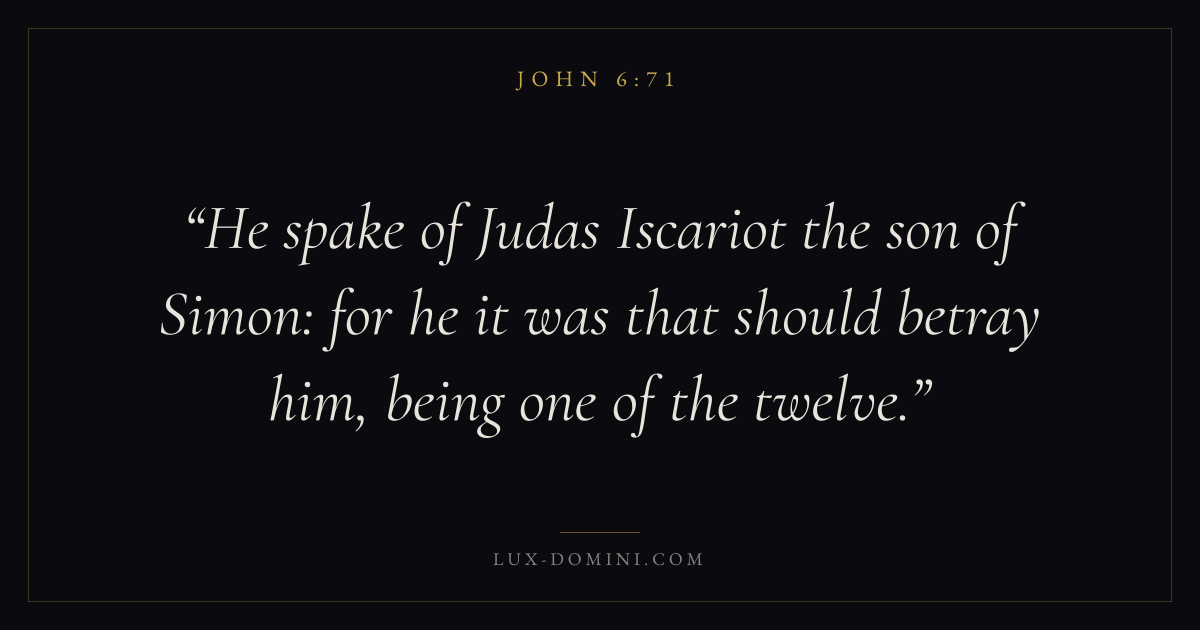 He spake of Judas Iscariot the son of Simon: for he it was that should betray him, being one of the twelve.