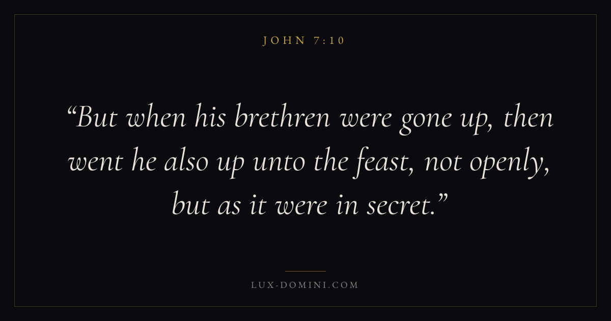 But when his brethren were gone up, then went he also up unto the feast, not openly, but as it were in secret.