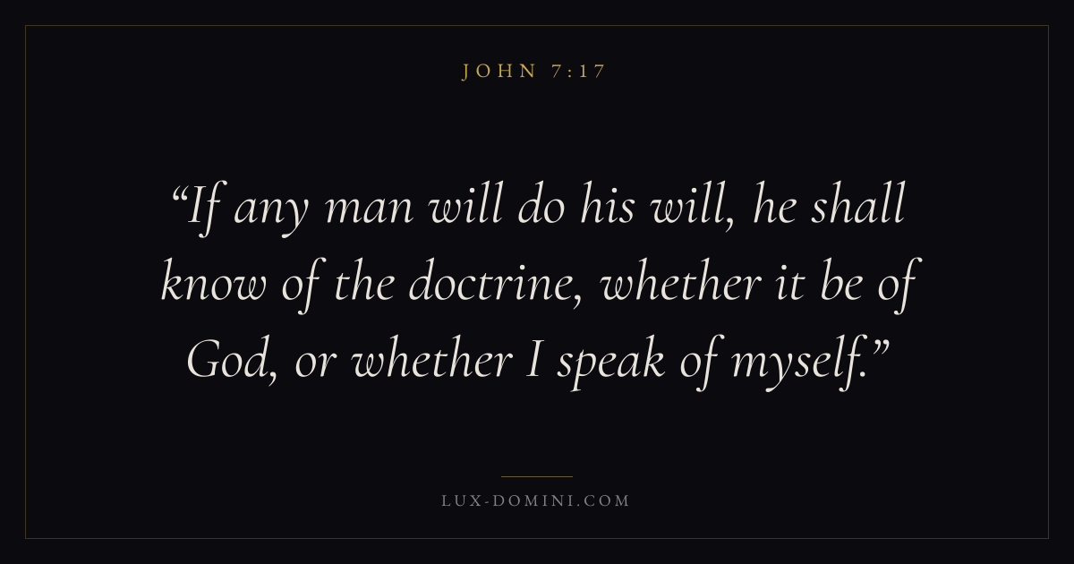 If any man will do his will, he shall know of the doctrine, whether it be of God, or whether I speak of myself.