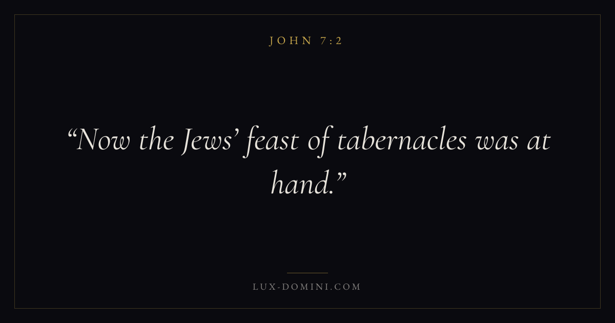 Books / John / Chapter 7 / Verse 2 ← John 7:1 John 7:2 John 7:3 → Now the Jews’ feast of tabernacles was at hand. Download verse card Share on Twitter Share on Facebook Pin it ✦ Key themes LoveFaithTruthIncarnation Read with John 7:1John 3:161 Corinthians 13:4Hebrews 11:1 Related topics Bible verses about loveBible verses about faithBible verses about truth ✦ John Chapter 7 verses V. 1 V. 2 V. 3 V. 4 V. 5 V. 6 V. 7 V. 8 V. 9 V. 10 V. 11 V. 12 V. 13 V. 14 V. 15 V. 16 V. 17 V. 18 V. 19 V. 20 V. 21 V. 22 V. 23 V. 24 V. 25 V. 26 V. 27 V. 28 V. 29 V. 30 V. 31 V. 32 V. 33 V. 34 V. 35 V. 36 V. 37 V. 38 V. 39 V. 40 V. 41 V. 42 V. 43 V. 44 V. 45 V. 46 V. 47 V. 48 V. 49 V. 50 V. 51 V. 52 V. 53