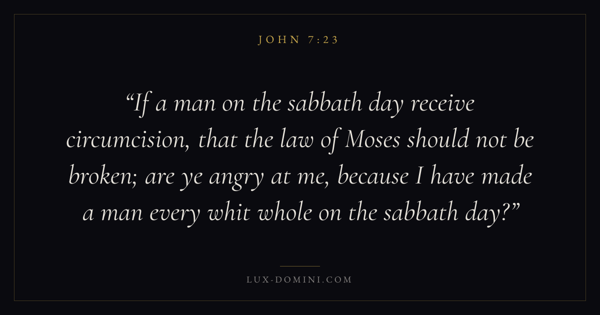 If a man on the sabbath day receive circumcision, that the law of Moses should not be broken; are ye angry at me, because I have made a man every whit whole on the sabbath day?